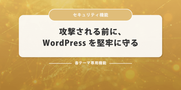 1. ログイン画面はカギをかけて、通知で即座に対応 GOLDテーマでは、WordPressのセキュリティリスクを最小限に抑えるためのログイン保護機能を用意。URLを変更することで、悪意のある攻撃者が管理画面を見つけづらくなり、さらにログイン失敗が続いた場合は自動でロック&メール通知が届く仕組みに対応しました。 ログインURLは自由に変更可能。「wp-logi...