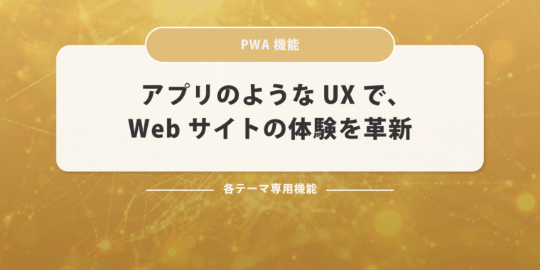 1. アプリのように使える、Webサイトの新しい形 PWA機能を有効化すると、スマートフォンやタブレットでサイトを開いた際に、まるでアプリのような使用感、UXを提供可能になります。 このPWA機能により、ユーザーはWebサイトをホーム画面に追加し、ネイティブアプリのような操作感覚で利用可能に。見た目も動作も従来のWebとは一線を画すUXで、エンゲージメントの...