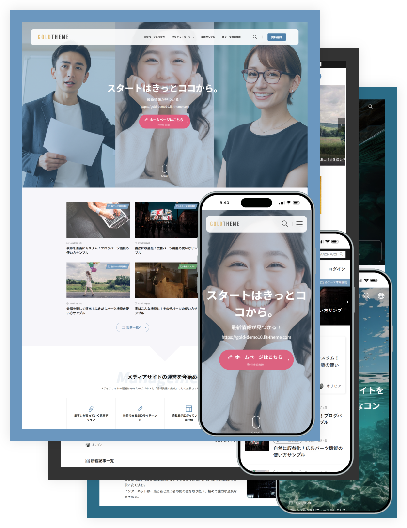ゴールドテーマシリーズを使えば、もう検索順位で悩む必要はありません。SEOの力を最大限に引き出し、あなたのメディアサイトを確実に上位へ導きます。 これまでとは違う、圧倒的なアクセス増を実感できるはずです。ゴールドテーマは、あなたのサイトを輝かせる最強のパートナーです。
